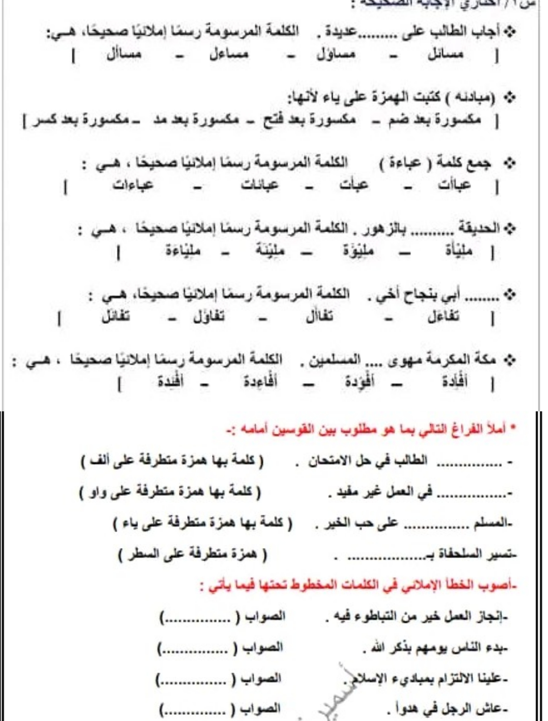 تمت المراجعة على بعض القواعد الإملائية (كتابة الهمزة في أول الكلمة وفي وسطها وفي آخرها)